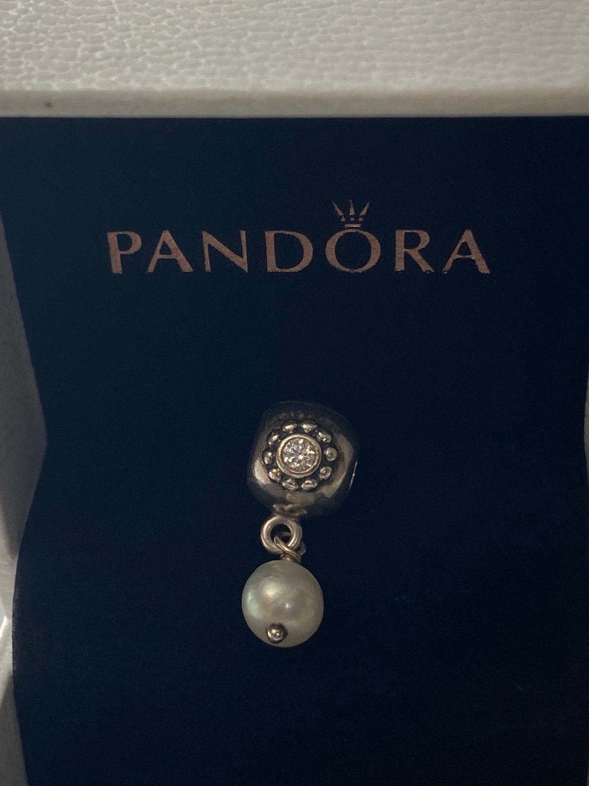 Authentic Pandora Pearl of Wisdom Dangle Clip charm with Clear CZ