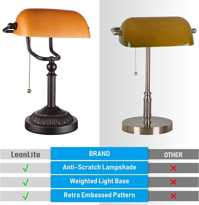 Easy to Install: The 6.2ft long power cord makes plug-n-play setup super easy. Compatible with standard E26 bulbs within 60W (not included), this bankers lamps for desk works with LED, incandescent, and halogen bulbs