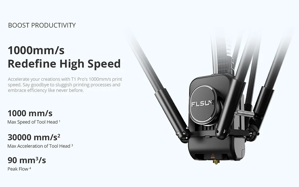 FLSUN T1 Pro 1000mm/s Ultra Fast Delta 3D Printer, 260*260*330mm, CPAP High-Pressure Turbo Fan, Al Detection, 300℃ High-temp Hotend
