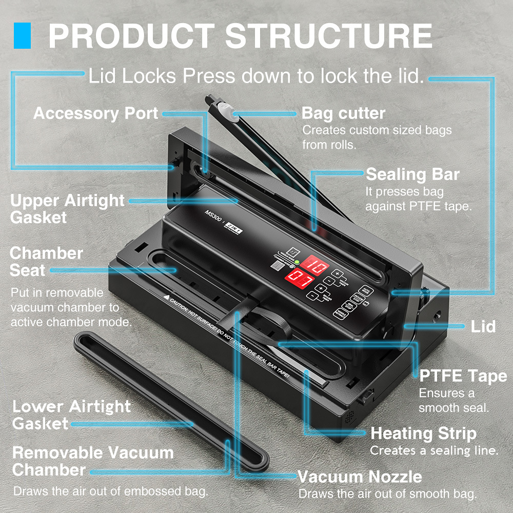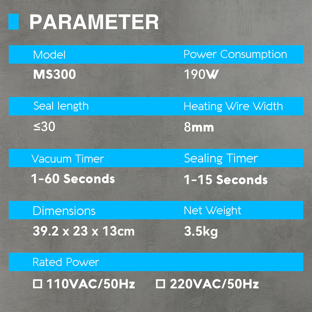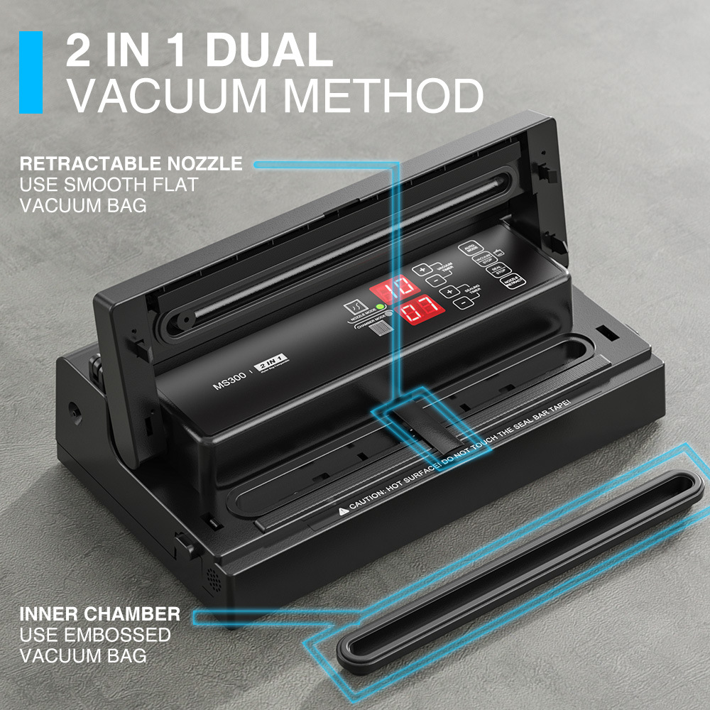 MS300 2-IN-1 Air-cooled vacuum sealing machine Main Features:
