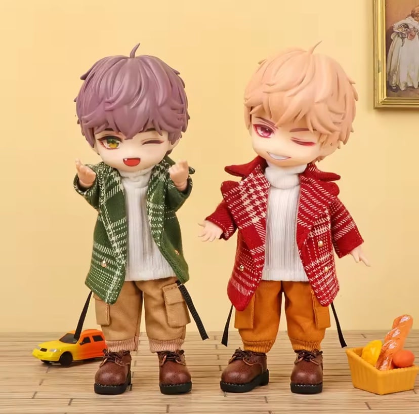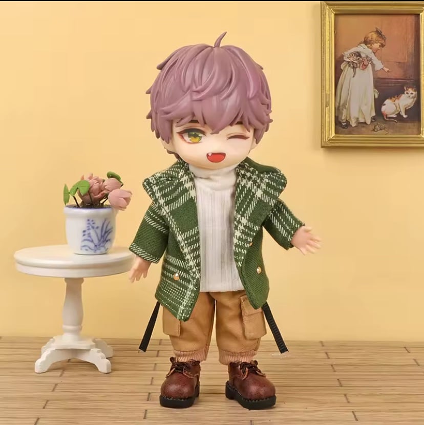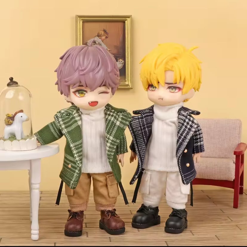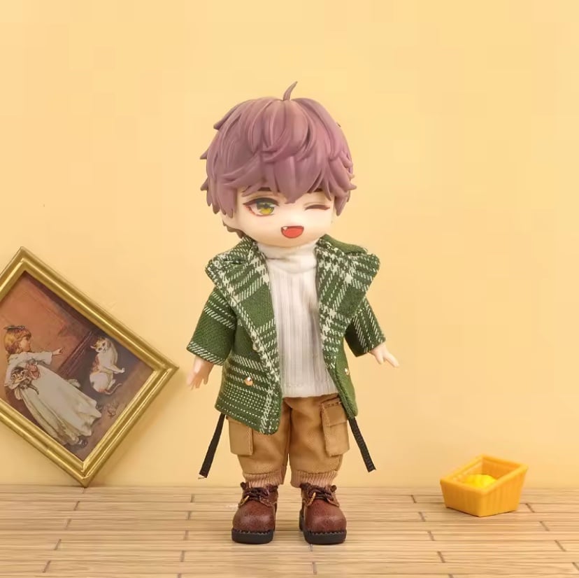 New, unused high quality handmade GREEN Blazer Plaid Coat/Jacket outfit set for Obitsu 11 dolls. It will also fit Nendoroid dolls, just a little loose on them.