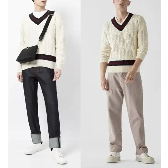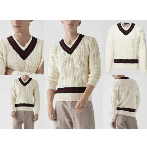 Polo Ralph Lauren P Wing Cable Knit Wool V-Neck Varsity Sweater Men's Size M NWT