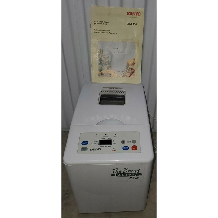 Sanyo Bread Factory Plus Automatic Bread Maker SBM150 SBM-150 W/Manual - Tested. Condition is "Used". It has the usual scuffs and scrapes from use, but works perfectly. Includes the bread maker, pan, paddle, and manual. Ready to enjoy! We ship the same business day in most cases.