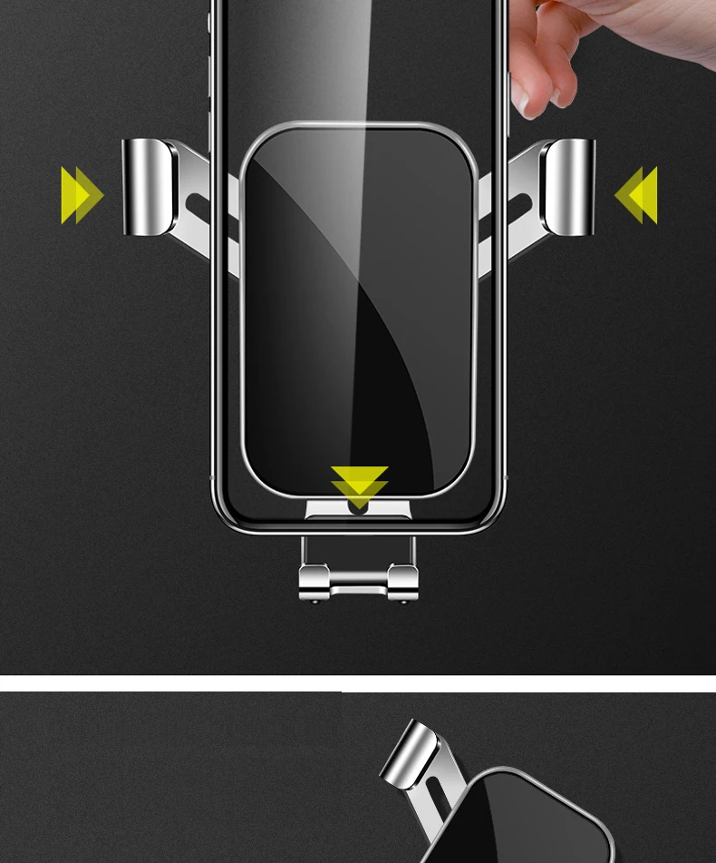 Design: Innovative design, gravity linkage and triangular support, clamp automatically when the phone is put on the holder, steady and stable, release automatically when take the phone down from the holder, easy and convenient.Sturdy and Well Protective: High quality aluminum alloy cutting, surface oxidation, Car Mount use Elastic & Slip-proof Clip hold the Air Vent firmly, soft rubbers on vent to avoid scratching your devices.