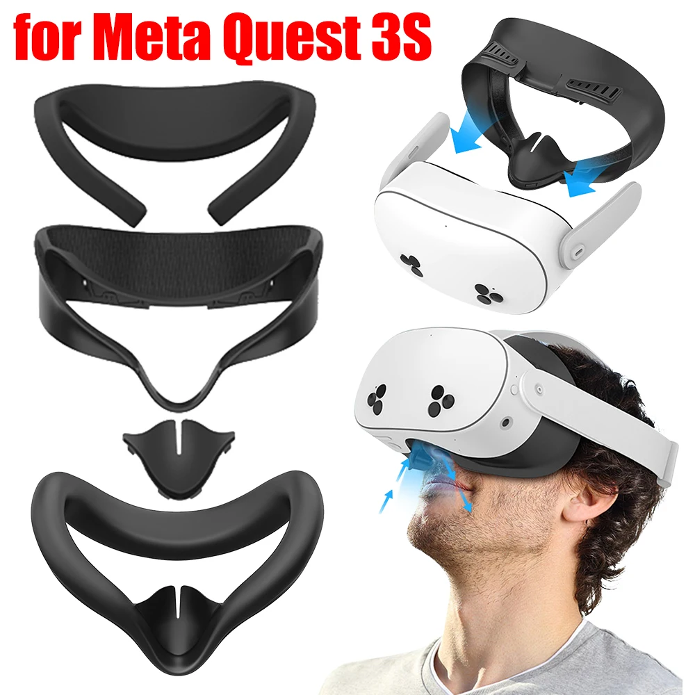 Face Cover Pad Facial Interface Sweat-Proof Soft PU Face Cushion Pad Replacement Comfort Anti-Leakage Nose Pad Removable Compatible with Meta Quest 3S VR Accessories
