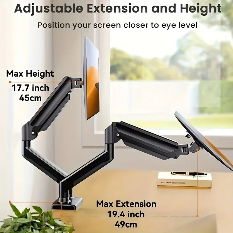 Dual Monitor Desk Mount up to 32 inches Screens Height Adjustable Monitor Stand, Heavy Duty Arm,VESA 75x75mm or 100x100mm, Black