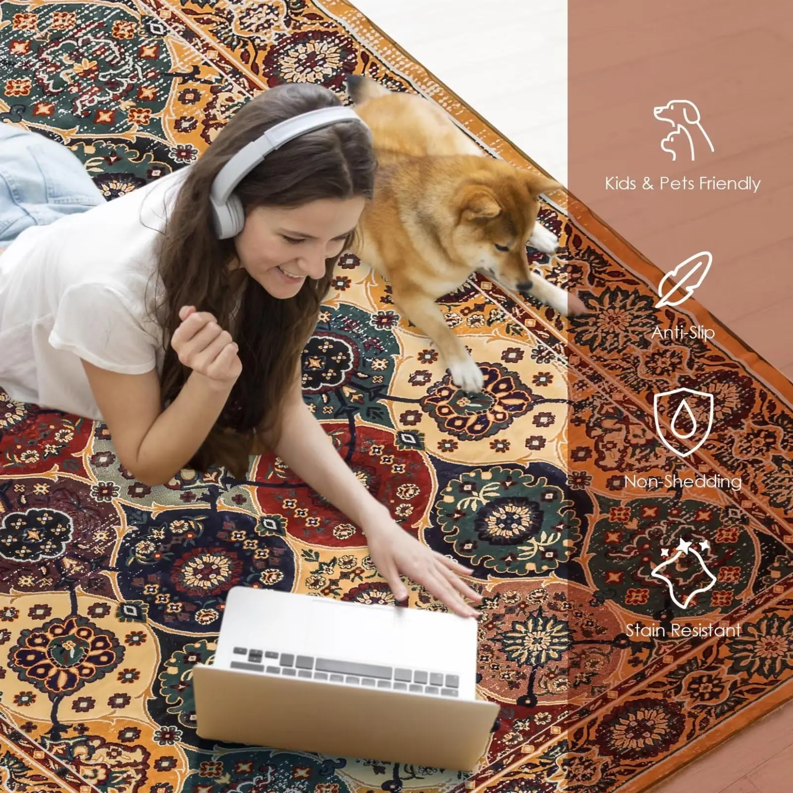 【Easy to Clean & Maintain】Our large rug is safe to use in the washing machine and air-dries quickly due to its thin pile design. Daily cleaning can be done with a vacuum, broom, or a simple wipe. Plus, any creases will relax within a week.