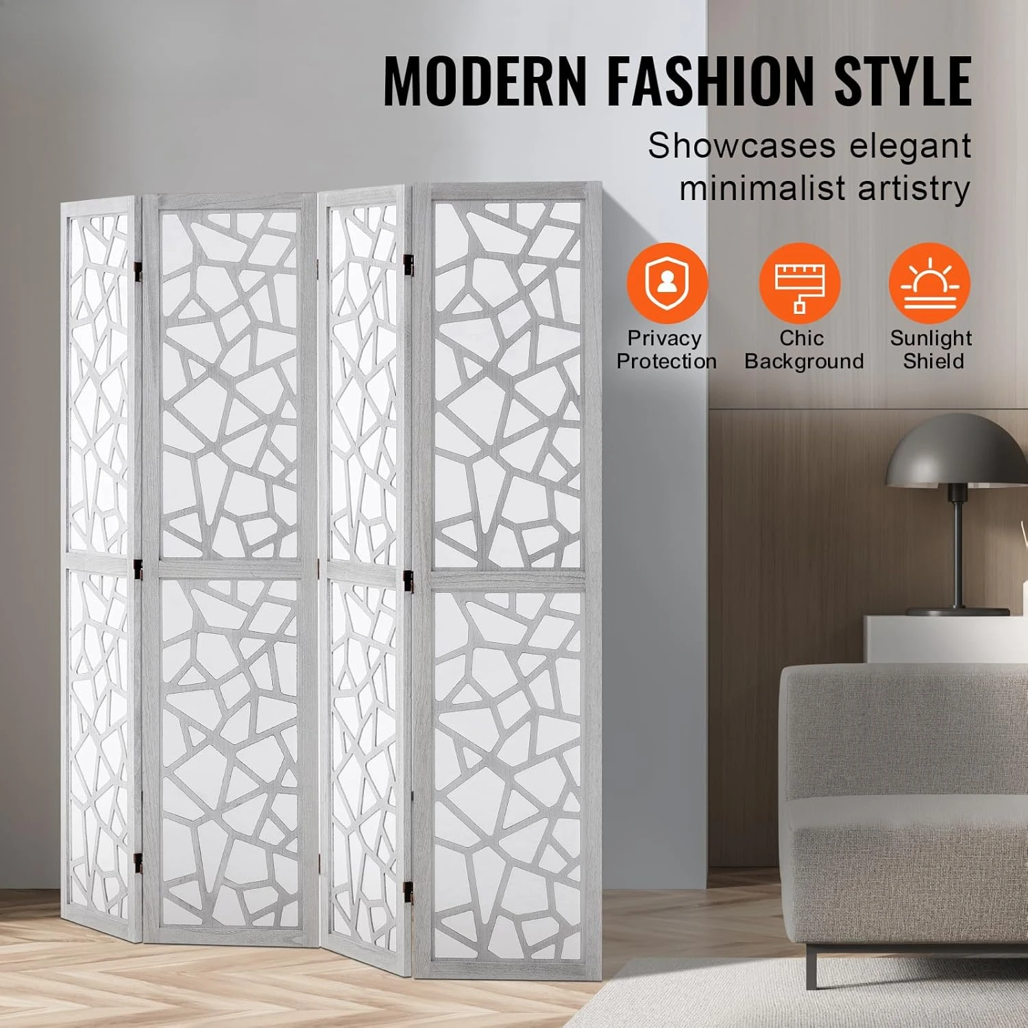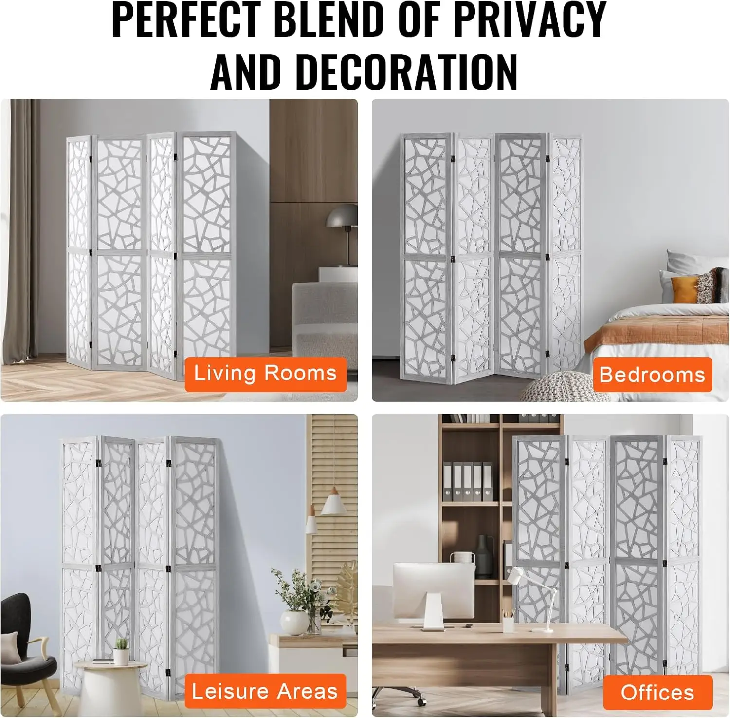 Wood Room Divider, 4 Panel Wood Folding Privacy Screen, 66.9 Inches Tall Indoor Carved Wooden Partition, Portable Decoration Screen, for Room Separation, Home, Office, Restaurant & Bedroom
