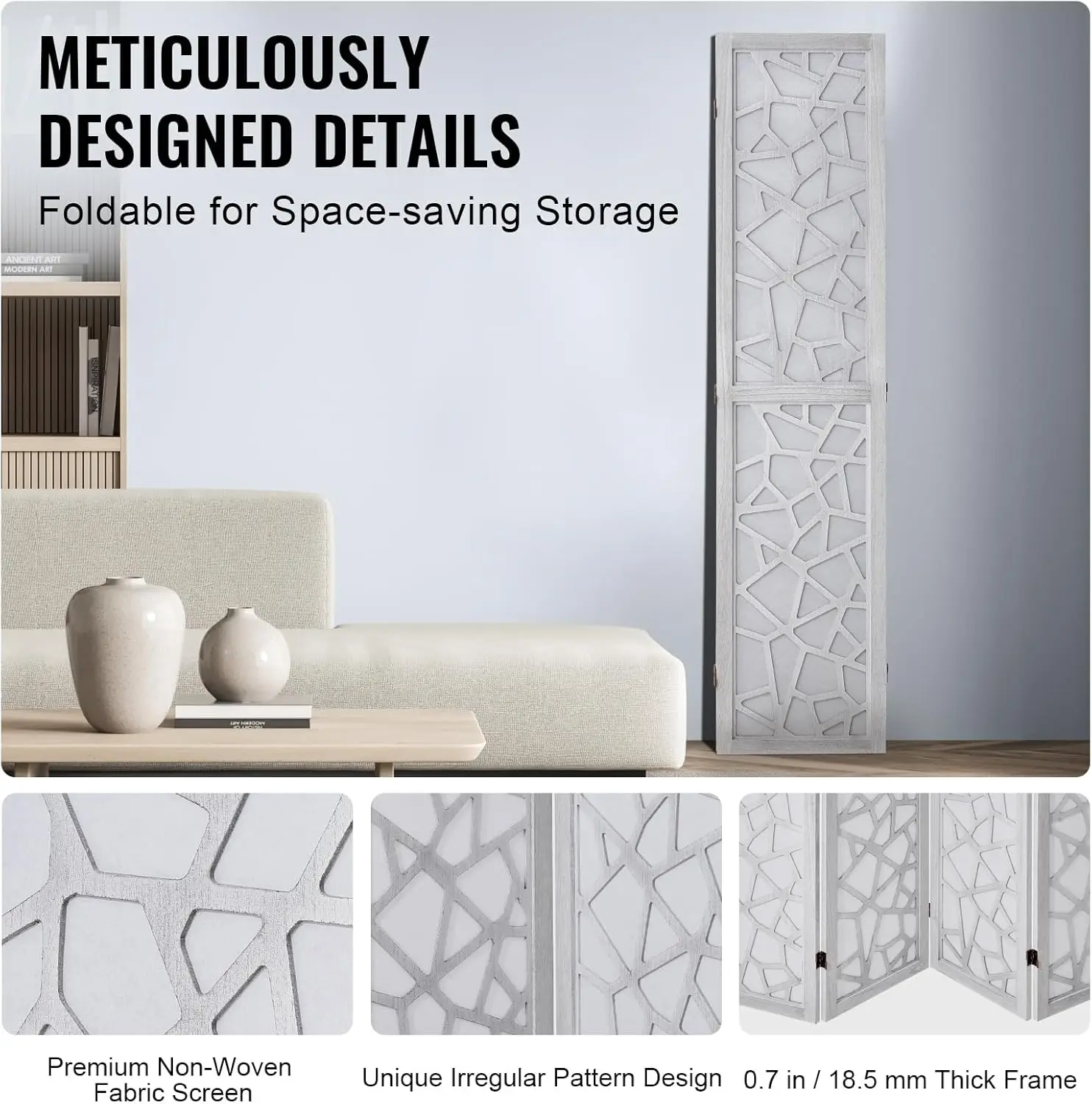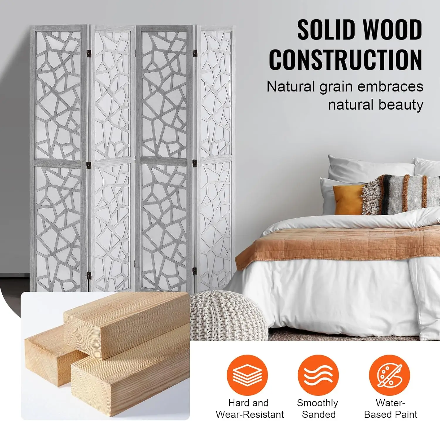 Wood Room Divider, 4 Panel Wood Folding Privacy Screen, 66.9 Inches Tall Indoor Carved Wooden Partition, Portable Decoration