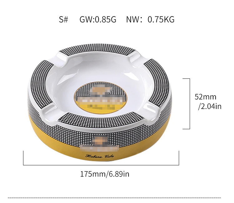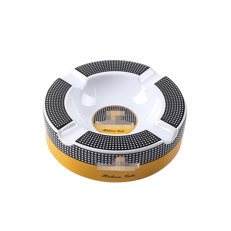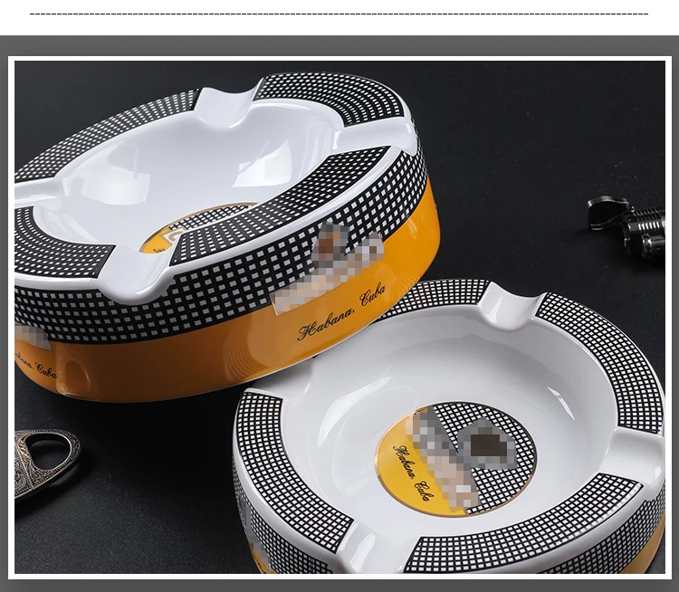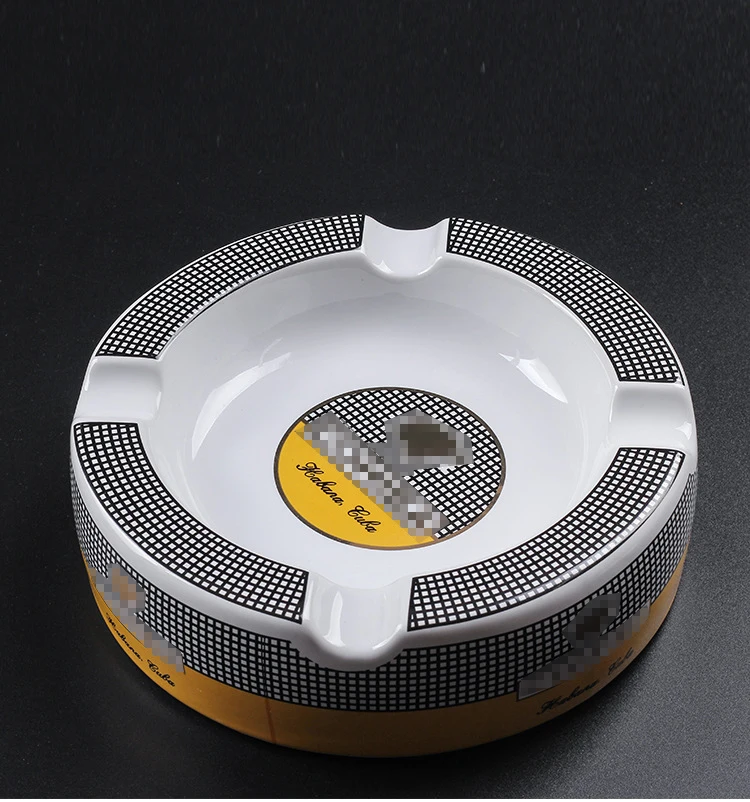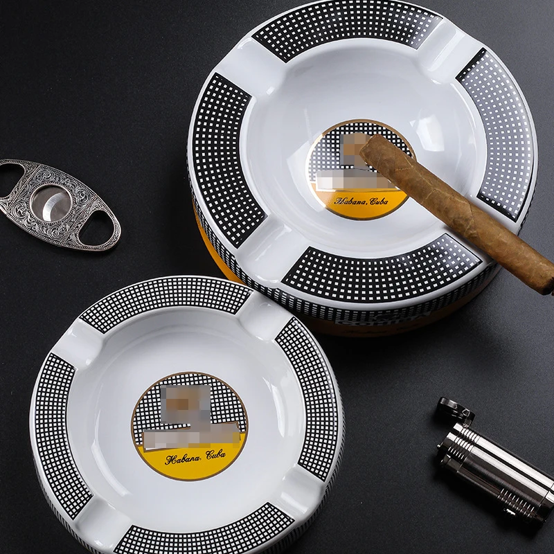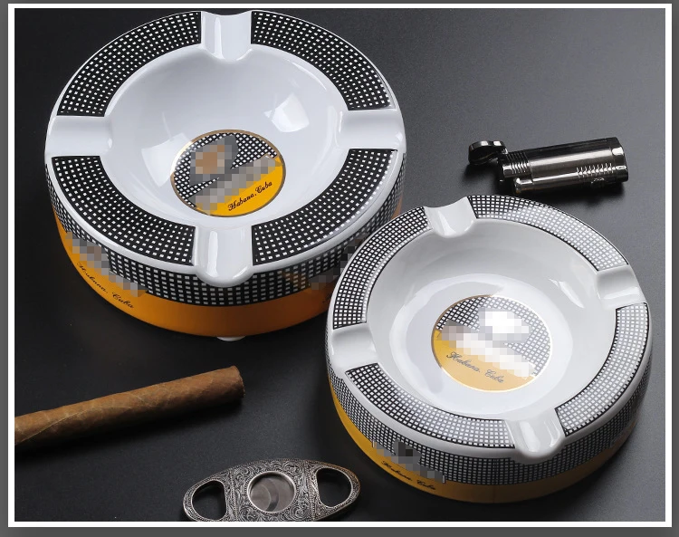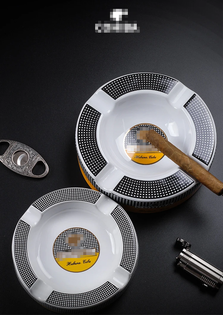 Free Ship! Cohiba High-definition Bone China Ceramic Round Cigar Ashtray for home 4 holders Smoking Ash Tray Cigars Accessories! Small size&large size 2 size optional!