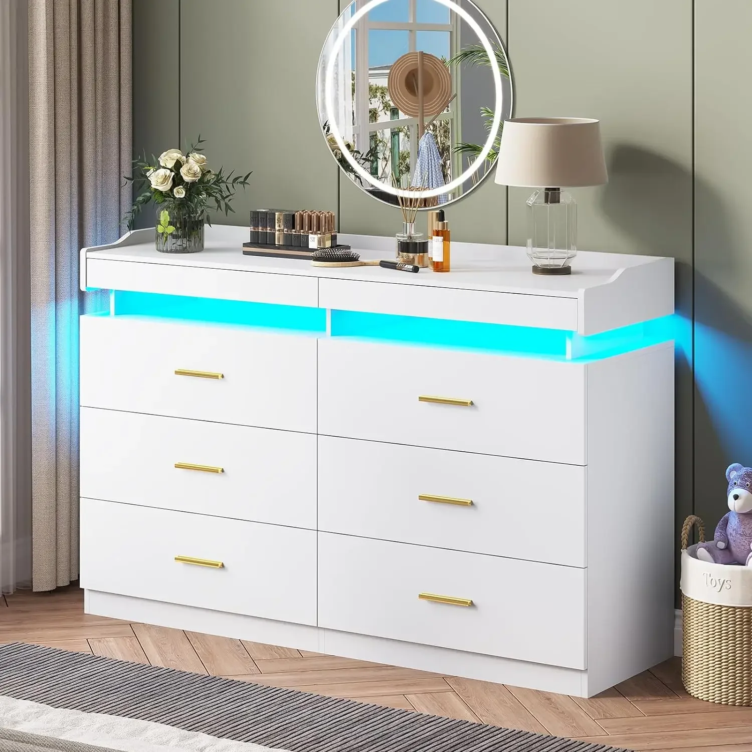 • Stylish and Contemporary Design: With its modern style and sleek appearance, this dresser adds a touch of elegance to any room. The LED light strip on the top adds a stylish and unique feature, creating a warm and inviting atmosphere.