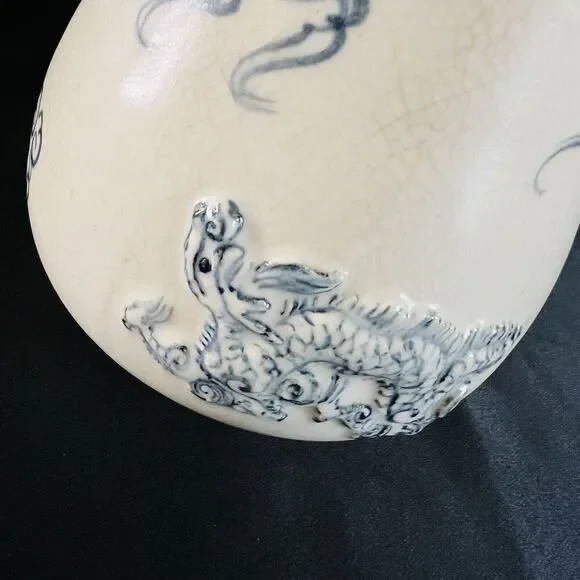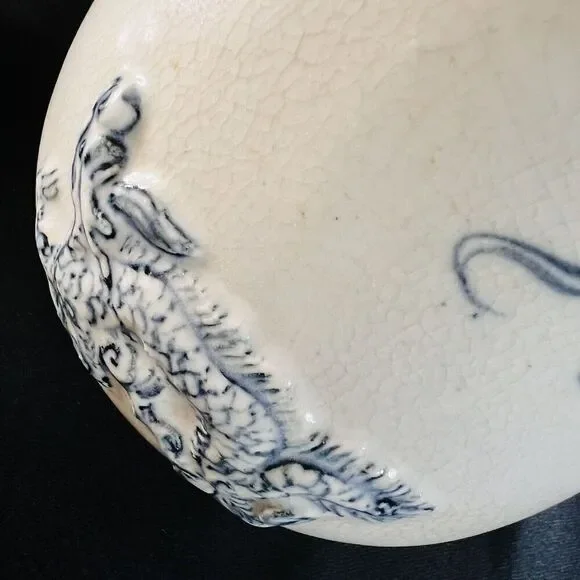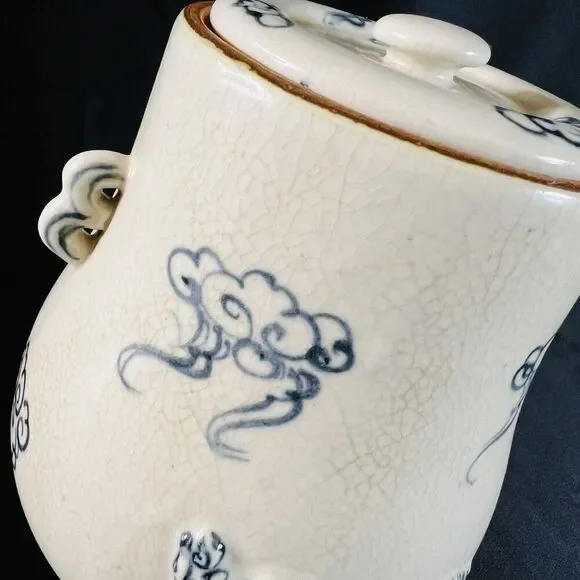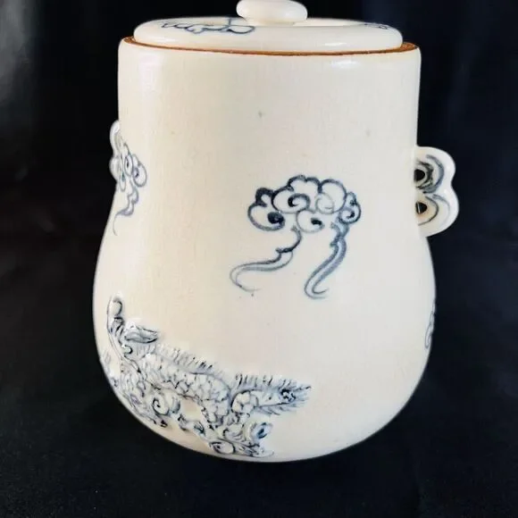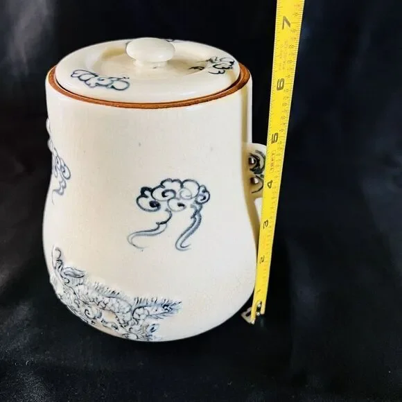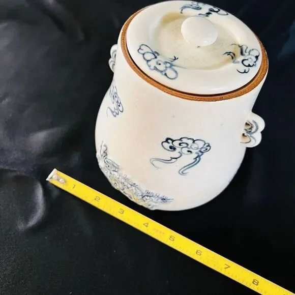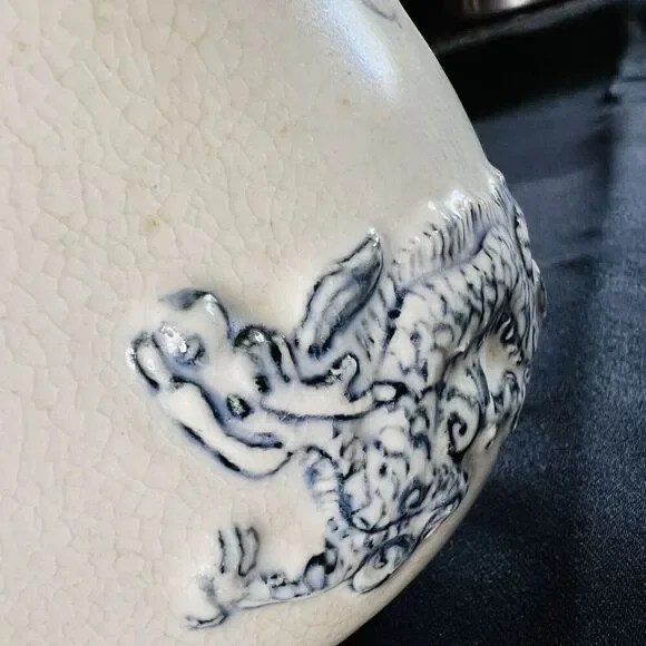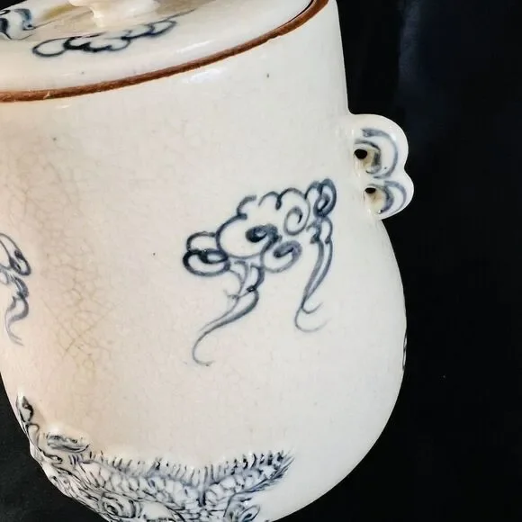 This possible antique Chinese ginger jar is a beautiful example of Oriental craftsmanship. The blue and white embossed dragon design, with foo dog handles, is truly stunning. The jar originates from China and is part of the Collectibles, Cultures & Ethnicities, Asian, 1900-Now, Chinese, Vases & Jars categories on eBay.