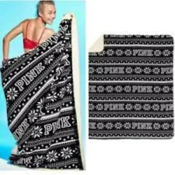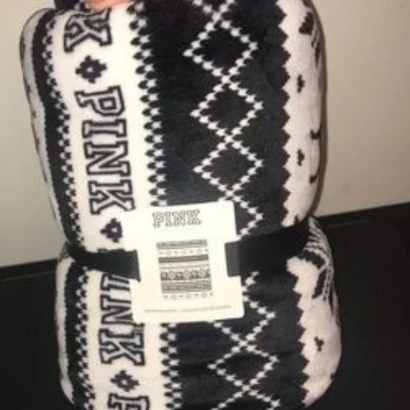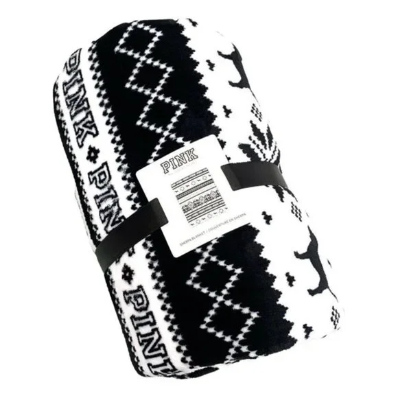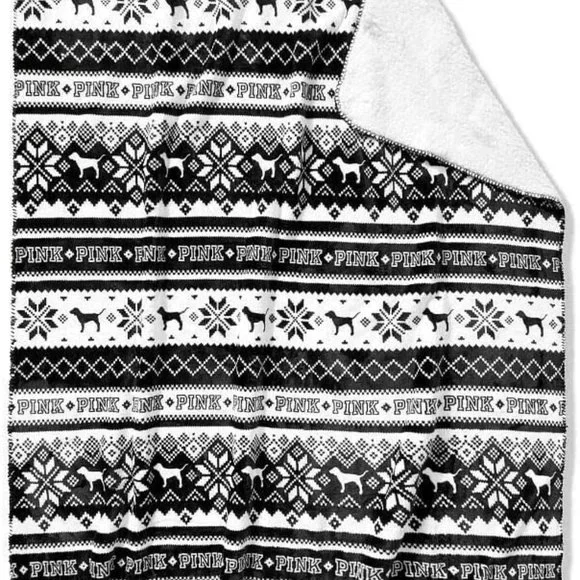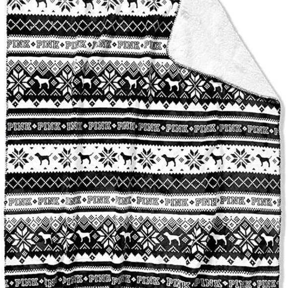 Victoria's Secret Pink"Fair Isle" Sherpa Snowflake Blanket 2019 Limited Edition🆕Brand new with tags! Still in factory sealed package. Perfect new condition, never used; no damage of any kind!SOLD OUT LIMITED EDITION from 2019! Rare/hard to find!!!Victoria Secret Pink "Fair Isle" snowflake/VS Logo/PINK dog print! Black and white Sherpa winter oversized throw blanket. One side printed, other side has white Sherpa fleece. Regular retail $64.95.Measurements:Length: 50"Width: 60"Product Care Instructions:Machine WashNon-smoking home.