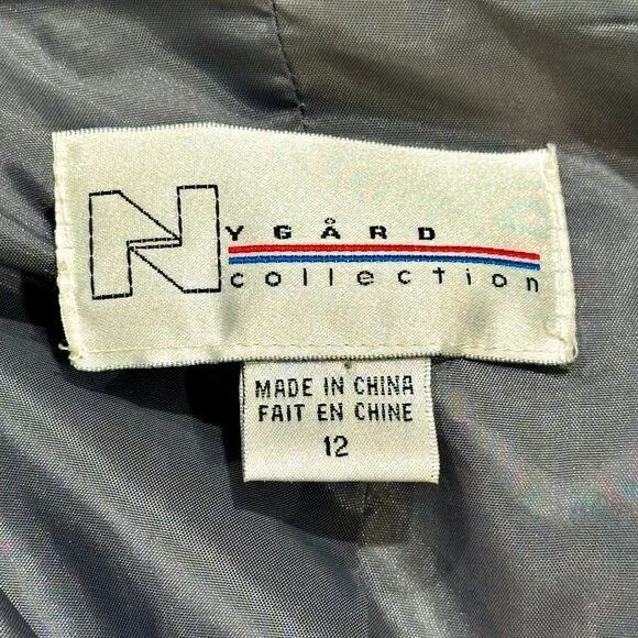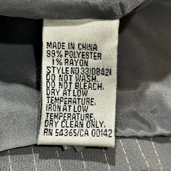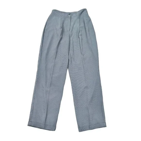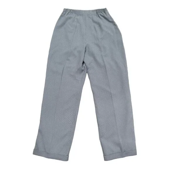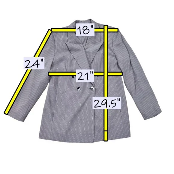 *Vintage 90s Peter Nygard Double Breasted Pantsuit / Size 12 *Gray White Pinstripes / Pleated & Cuffed Pants / Elastic Waist*Measurements are in the last two pictures.*Please do your due diligence in checking them as vintage sizing often runs differently than modern. *Smoke-free EnvironmentCondition:*One Spot Worth Noting (PIC 8)*I had trouble capturing the color; it's best shown in PICs 6-8.Thanks so much for your consideration!~Dana